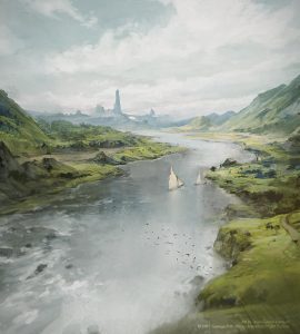 En traversant la chaîne de montagnes sur votre trajet vous entrerez dans les Riverlands. Observez, il s’agit une terre plate et fertile, parsemées de petites bourgades et de marchés et traversée par de nombreux fleuves et rivières. Ces derniers servent pour le commerce mais aussi comme voies de navigation.