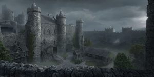 Lorsque vous serez en vue de Strom’s End, prenez le temps d’observer le mur extérieur, aveugle. Les pierres ajustées n’offrent ni angle, ni faille par où peut s’infiltrer le moindre vent. Ce mur protège des tempêtes et des indésirables, l’ensemble de la construction. À l’abri du vent, derrière ce mur se trouvent les écuries, les cuisines, diverses cours ainsi qu’un bois sacré. Et bien sûr vous n’aurez pu le manquer, s’y trouve également le château de Strom’s End lui-même.